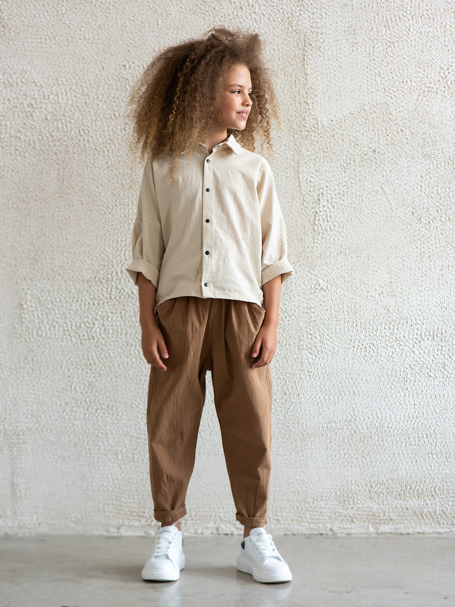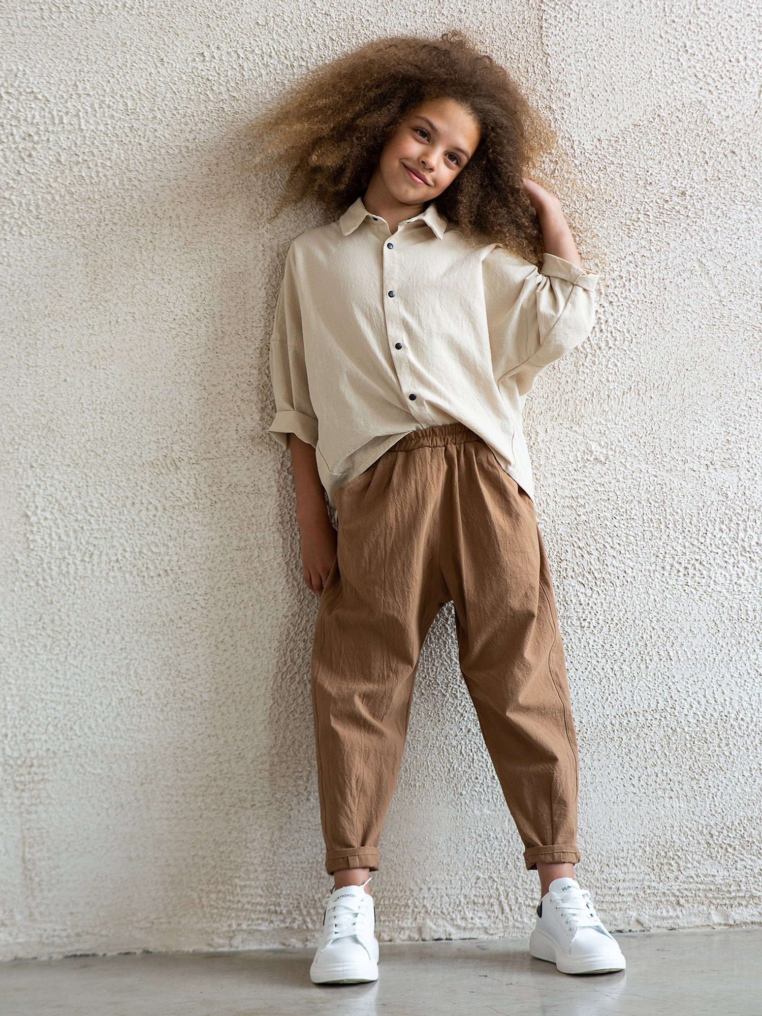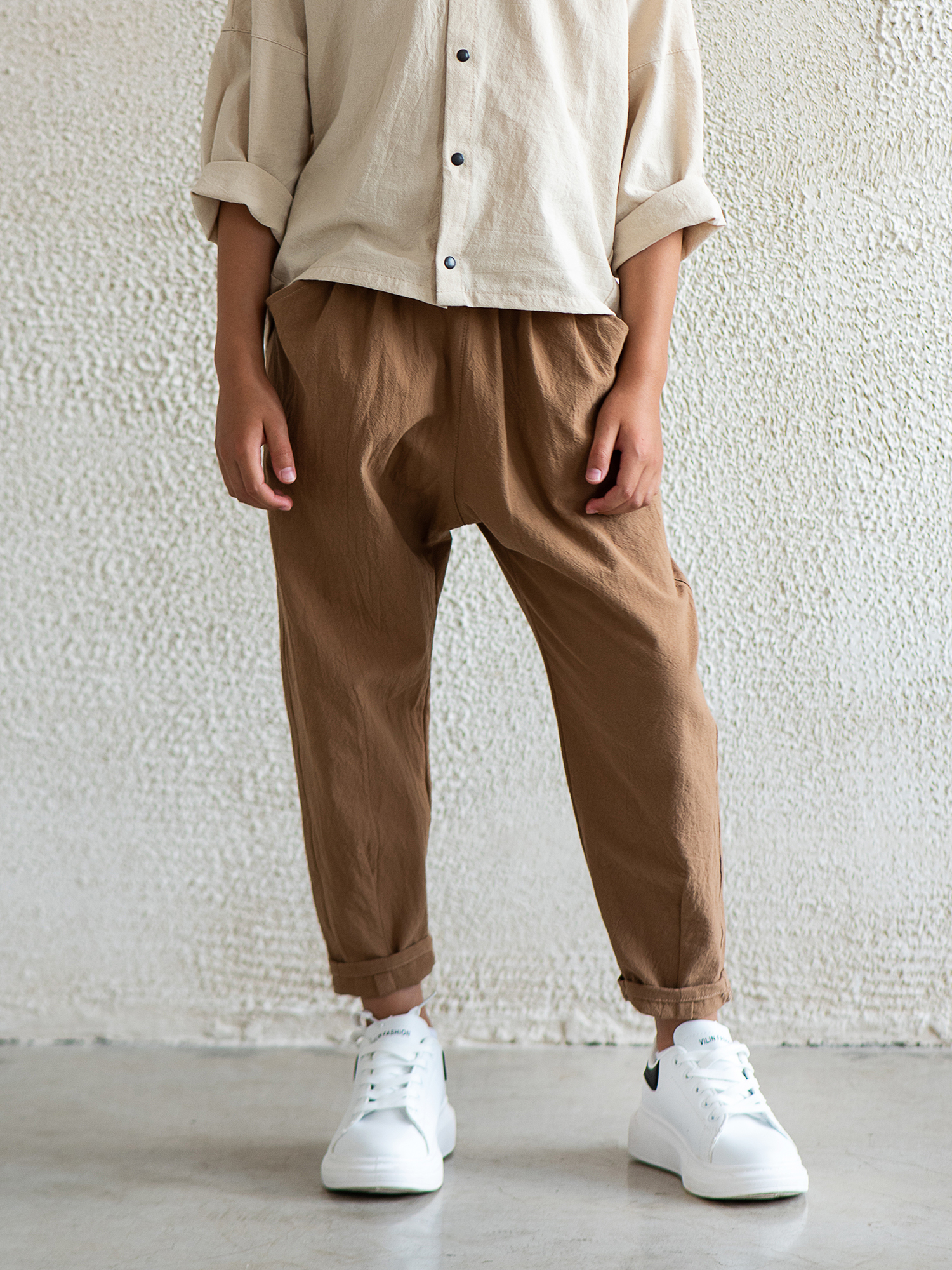 Лёгкие свободные штанишки из премиального "варёного" хлопка с эффектом лёгкой жатки