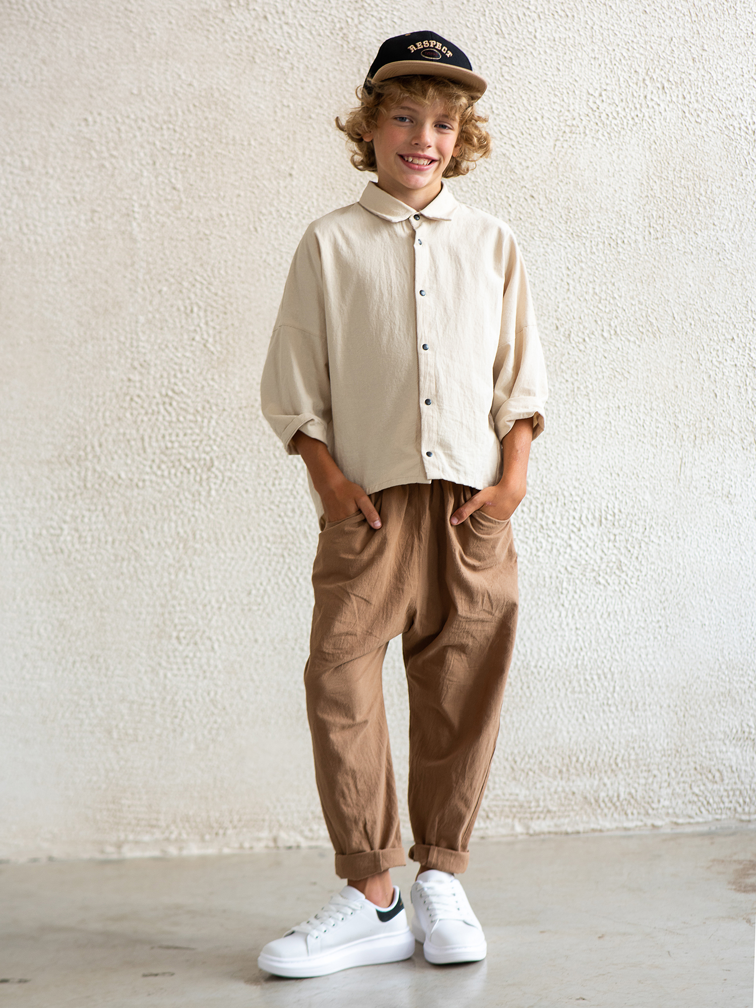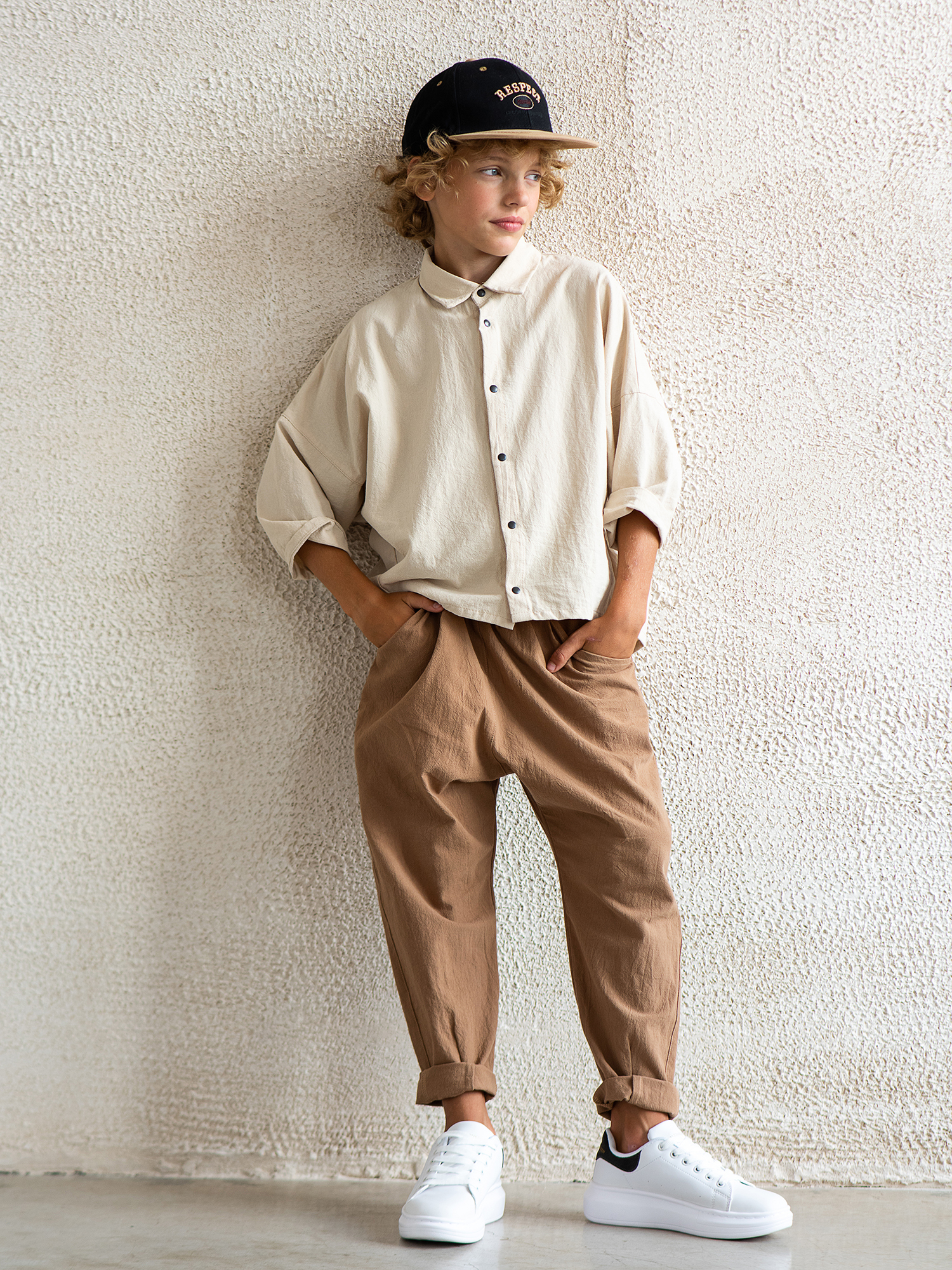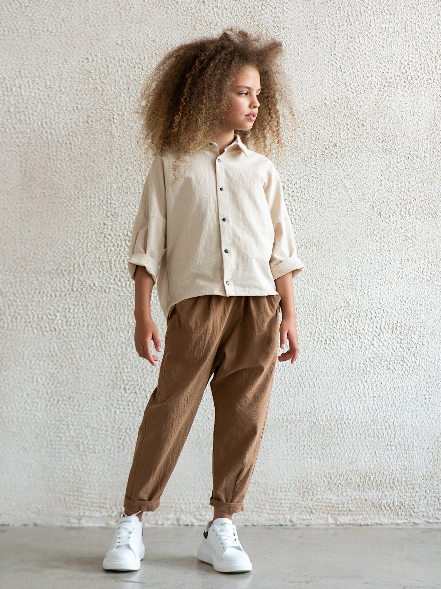 Лёгкие свободные штанишки из премиального "варёного" хлопка с эффектом лёгкой жатки