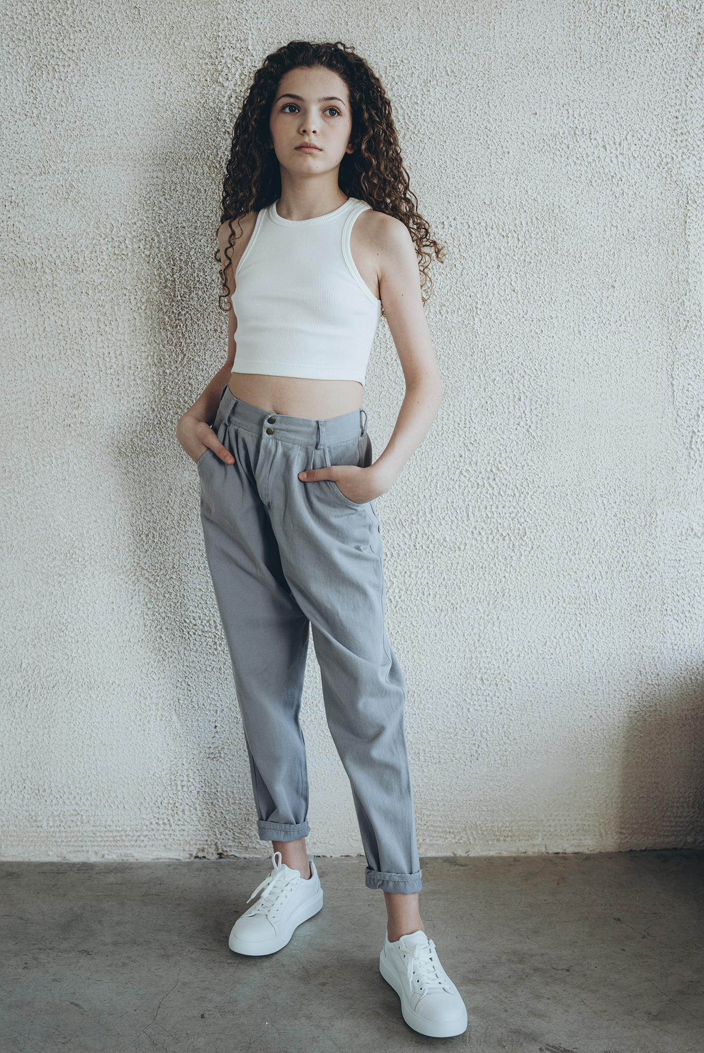 Свободные сверху, зауженные к низу, сзади пояс дополнен резинкой — всё, что нужно для идеальной посадки по фигуре)