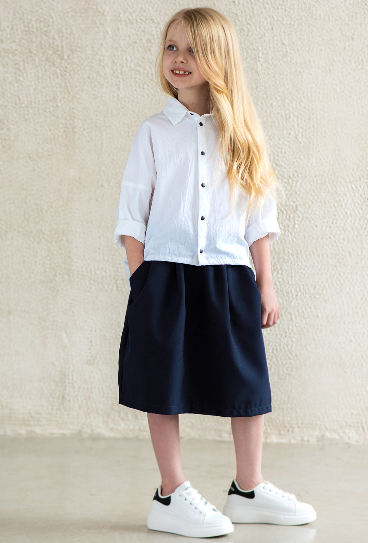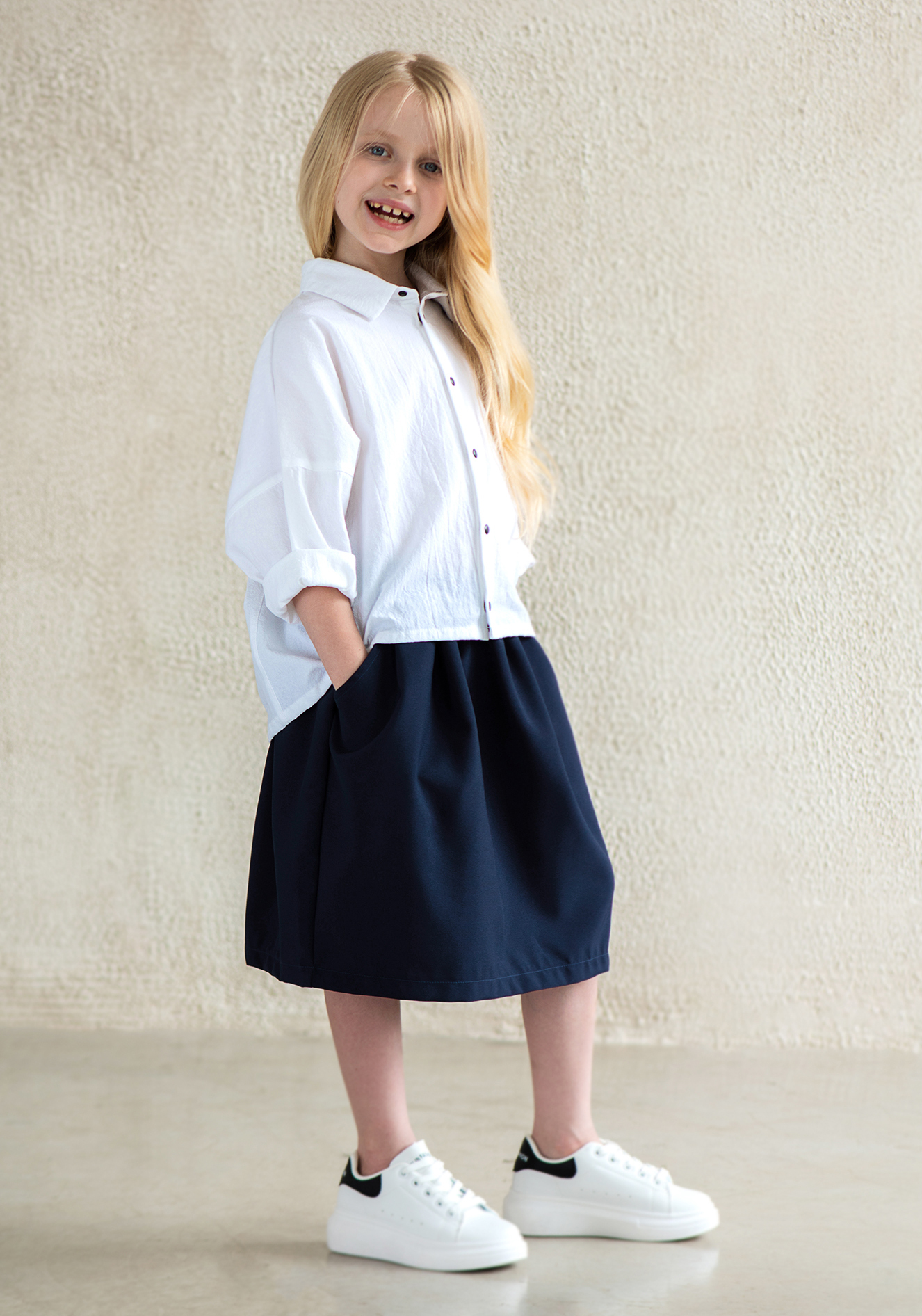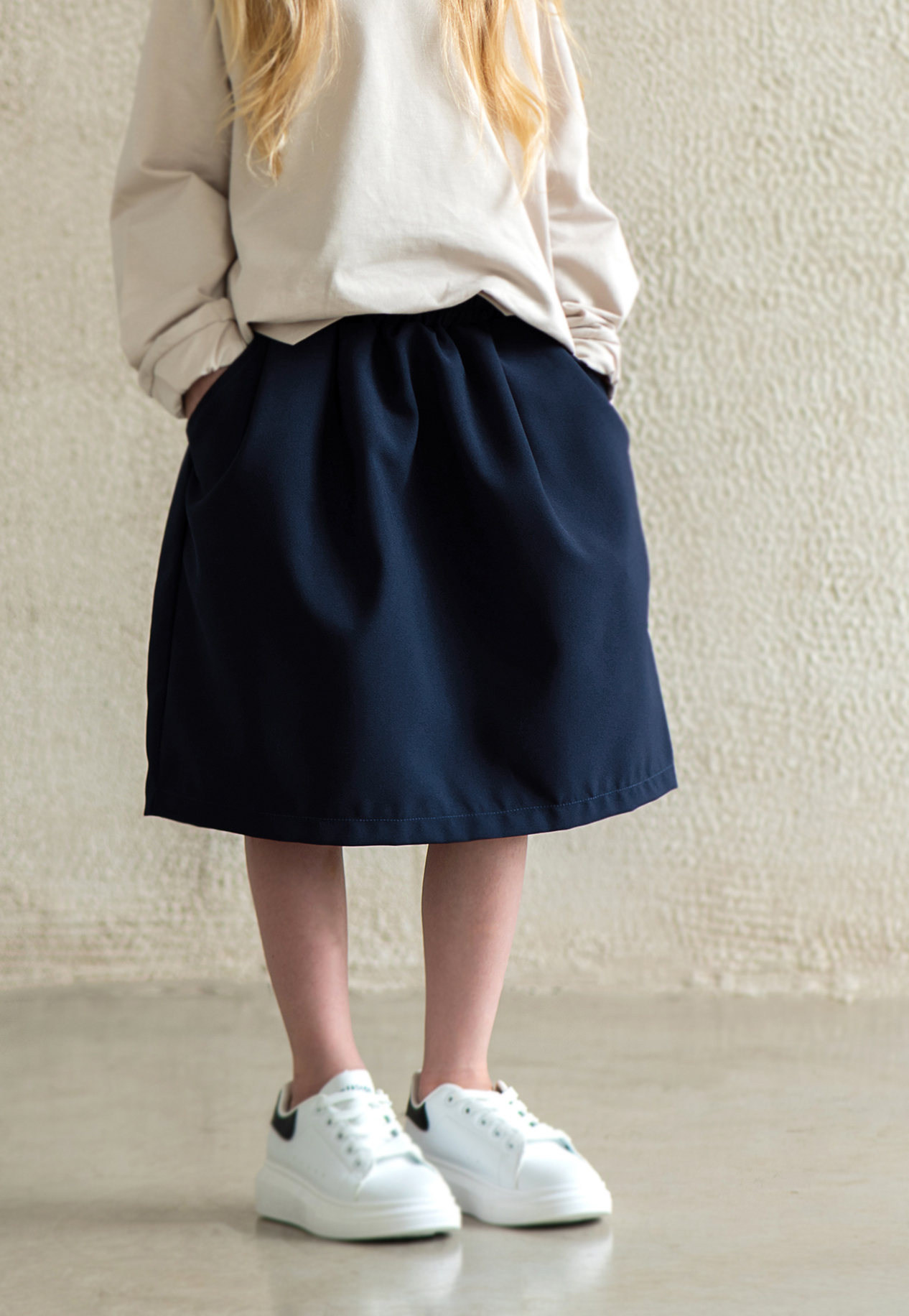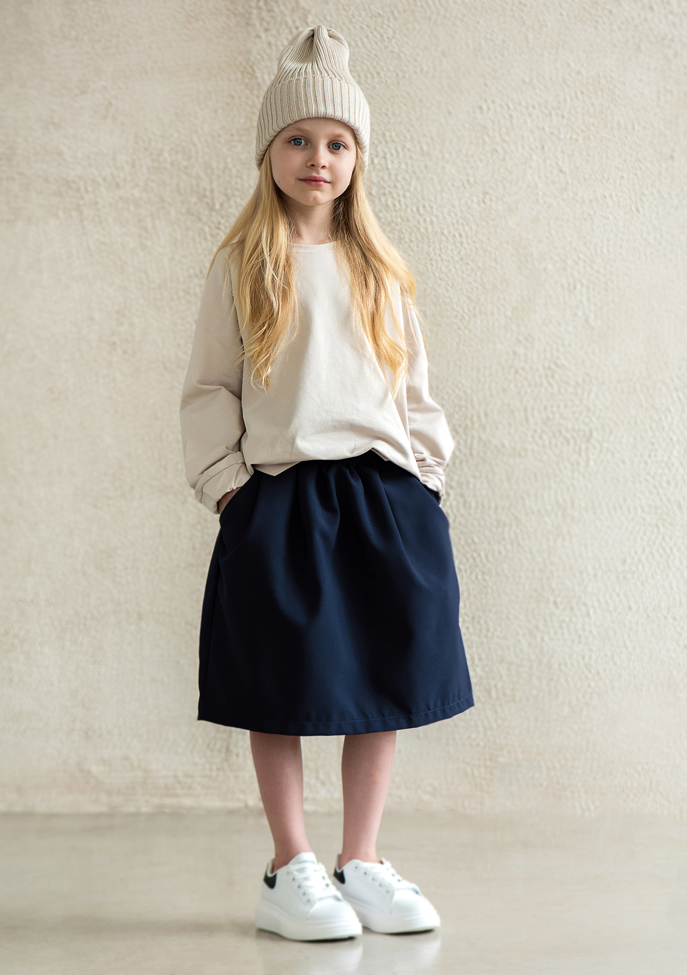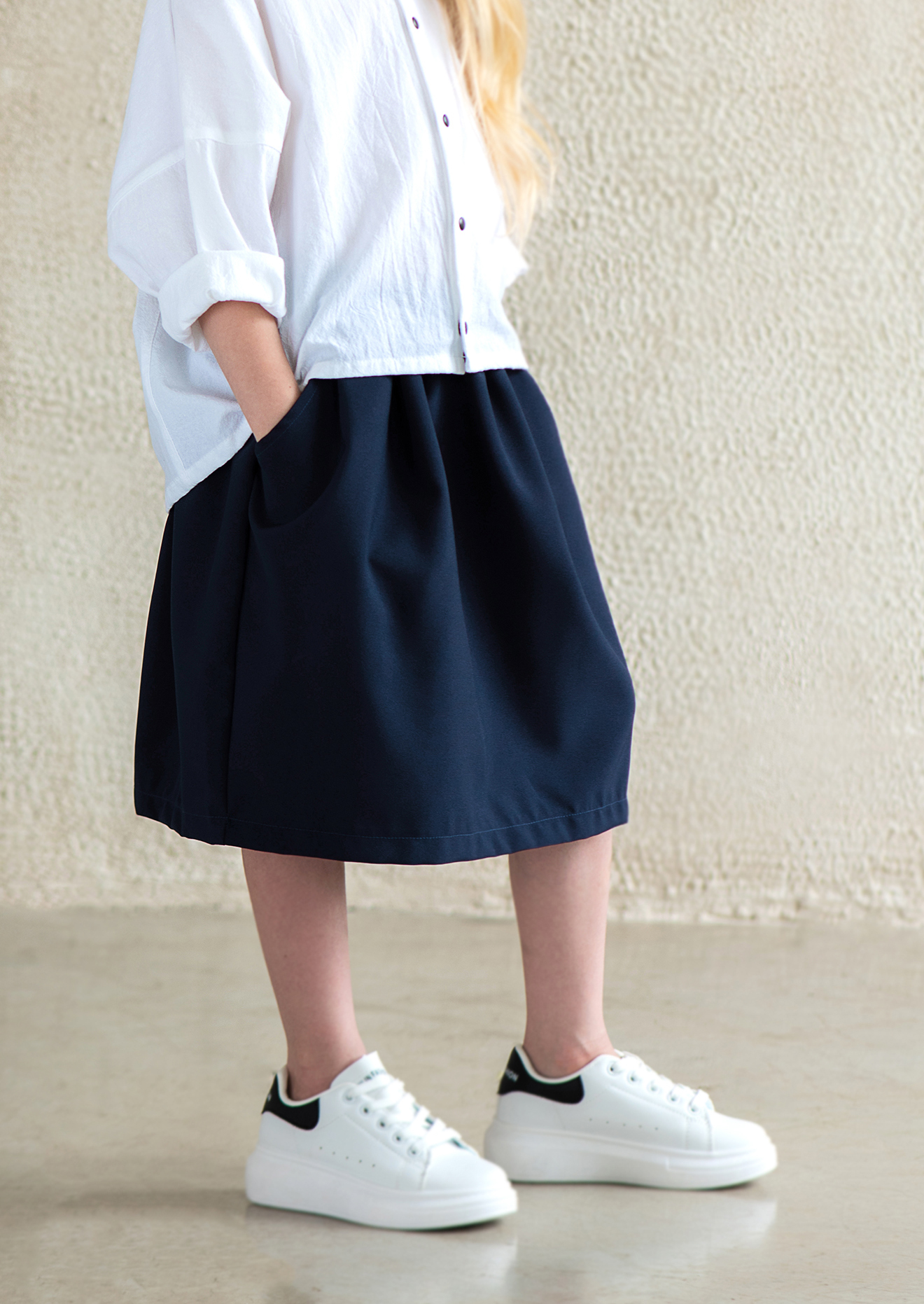 Стандартная длина юбочки для своего размера — чуть ниже колен, но вы можете подобрать длину повыше или пониже, взяв соответсвующий этой длине размер (см. измерения), т.к. резинка на поясе подходит для нескольких размеров.