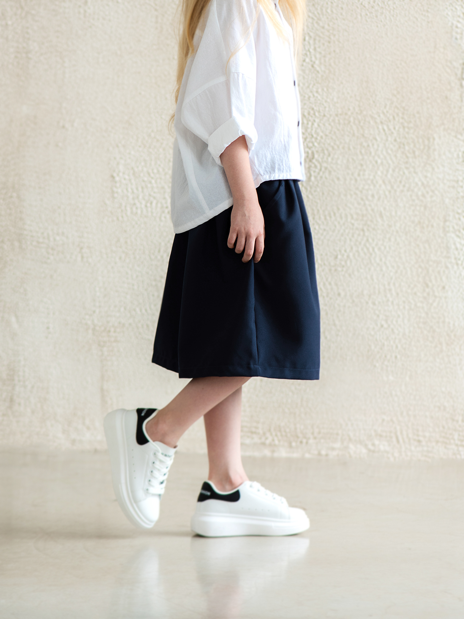 8-9 лет (рост 128/134см) — длина 47см, пояс растягивается до 90см